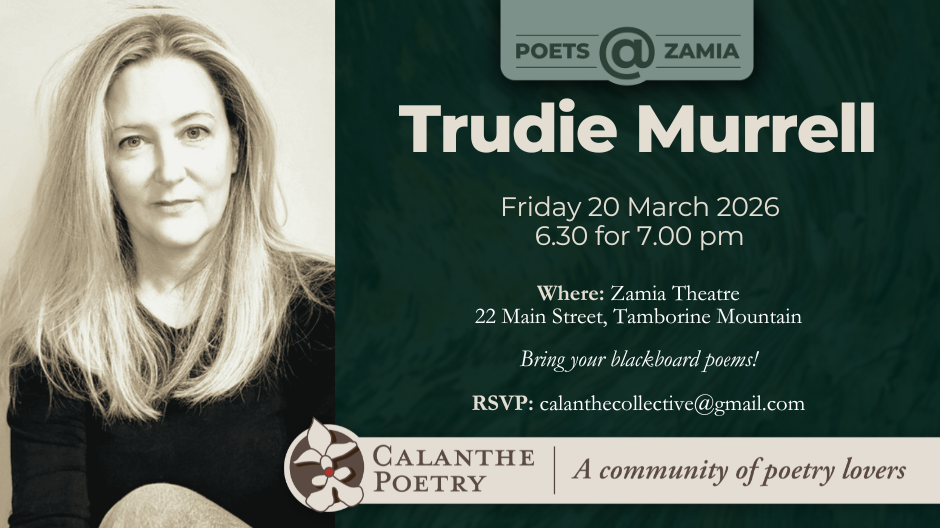 Trudie Murrell is Calanthe Poetry guest poet at the Zamia Theatre on Tamborine Mountain on Friday 20 March 2026.